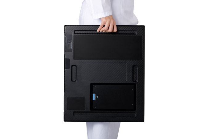 The sleek, tough and ergonomically sculpted new CXDI-10 Series Wireless Detector design includes ergonomic handgrips sculpted into the detector, high quality composite materials, low weight, and smooth rounded corners.